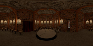 At intervals there are dark statues with torches in sconces, spitting light in the rain. Each statue seems more horrible than the last. At the top, there is a cave entrance into the volcano. Great idols of foul beasts apt to warm the hearts of any insane cultists frame the entrance. Gloria notes she sort of likes them. From the entrance, stairs lead down into the cone. Lee leads the way, with the others behind, with Jack brining up the rear behind his people. What they see is a sight out of one of the penny pulps.