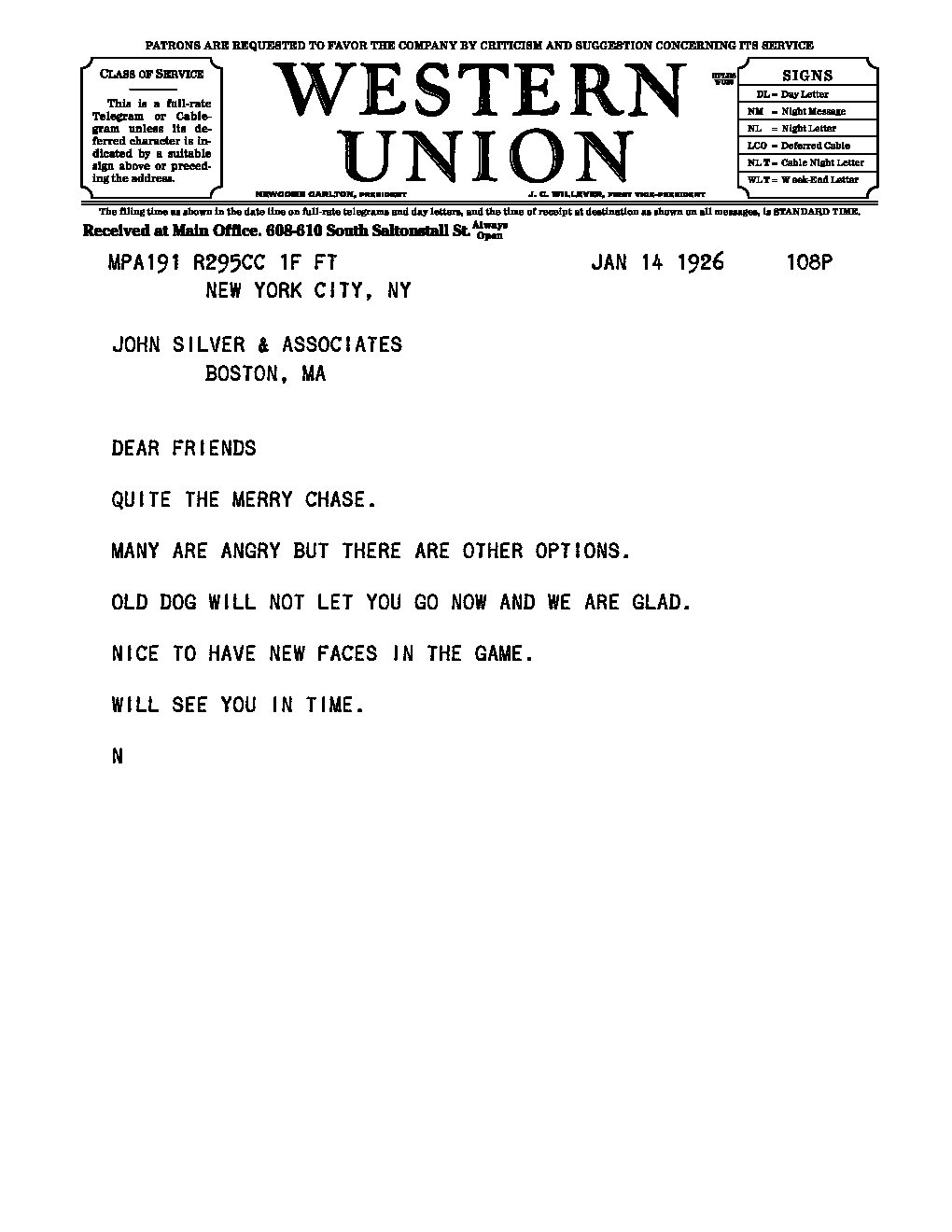 The party breaks up and as Gloria, Iris and the Professor head out, a telegram arrives, addressed to all of them.