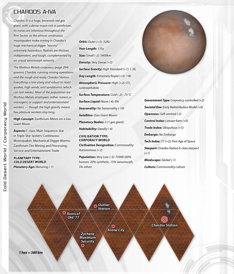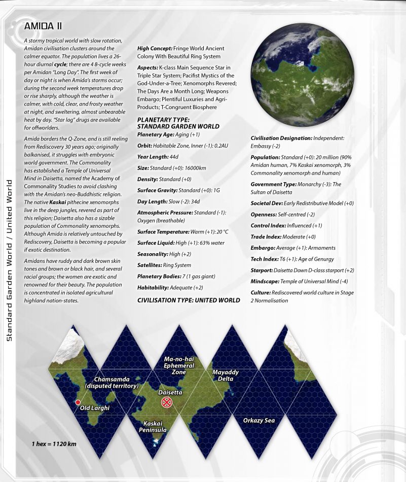 The Darradine Rim is octant gamma of the Darradine Restoration subsector, subsector TX2.4.2 of the Rim Sector on the edge of Commonality Space. A region of intense exploratory activity badly affected by the Venu War of 110-120 NCE, it borders the Quarantine Zone with the Venu Empire, and is a hotbed of activity against the Commonality’s nefarious foe.
