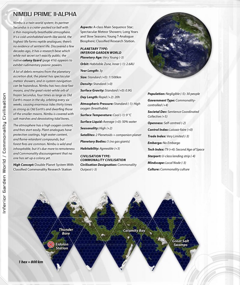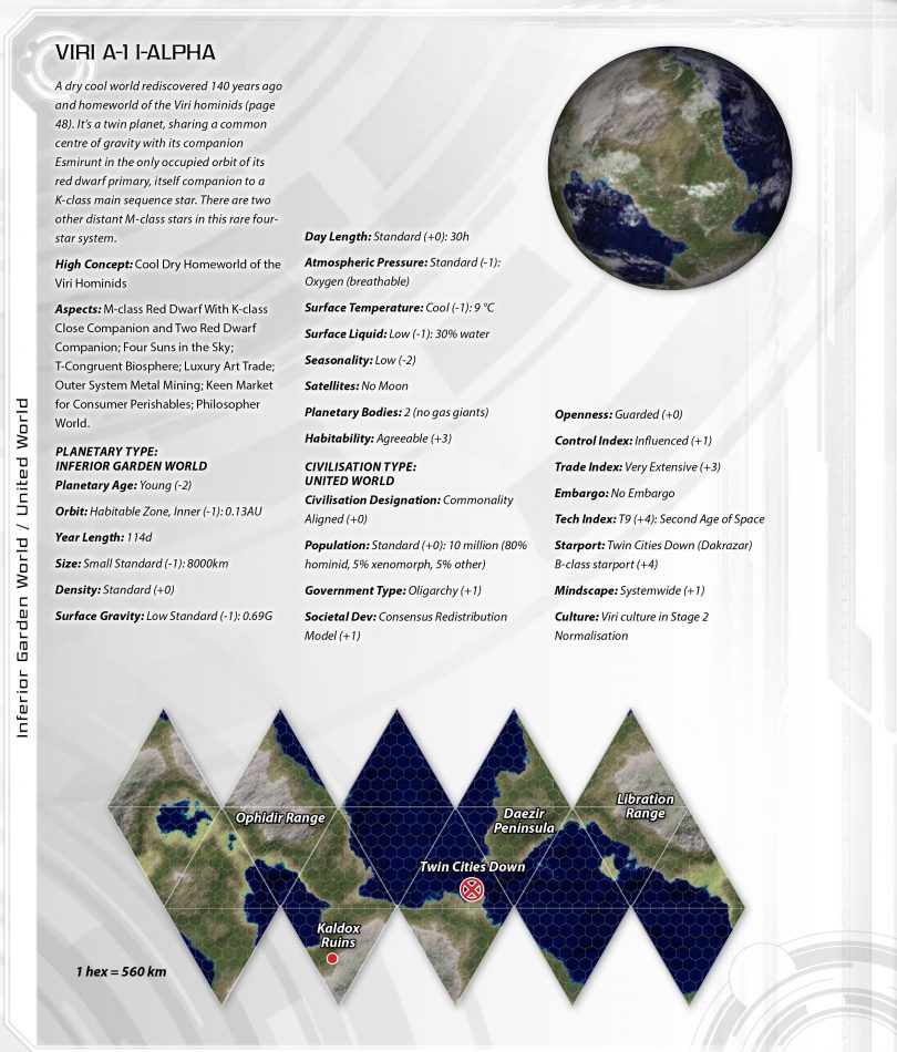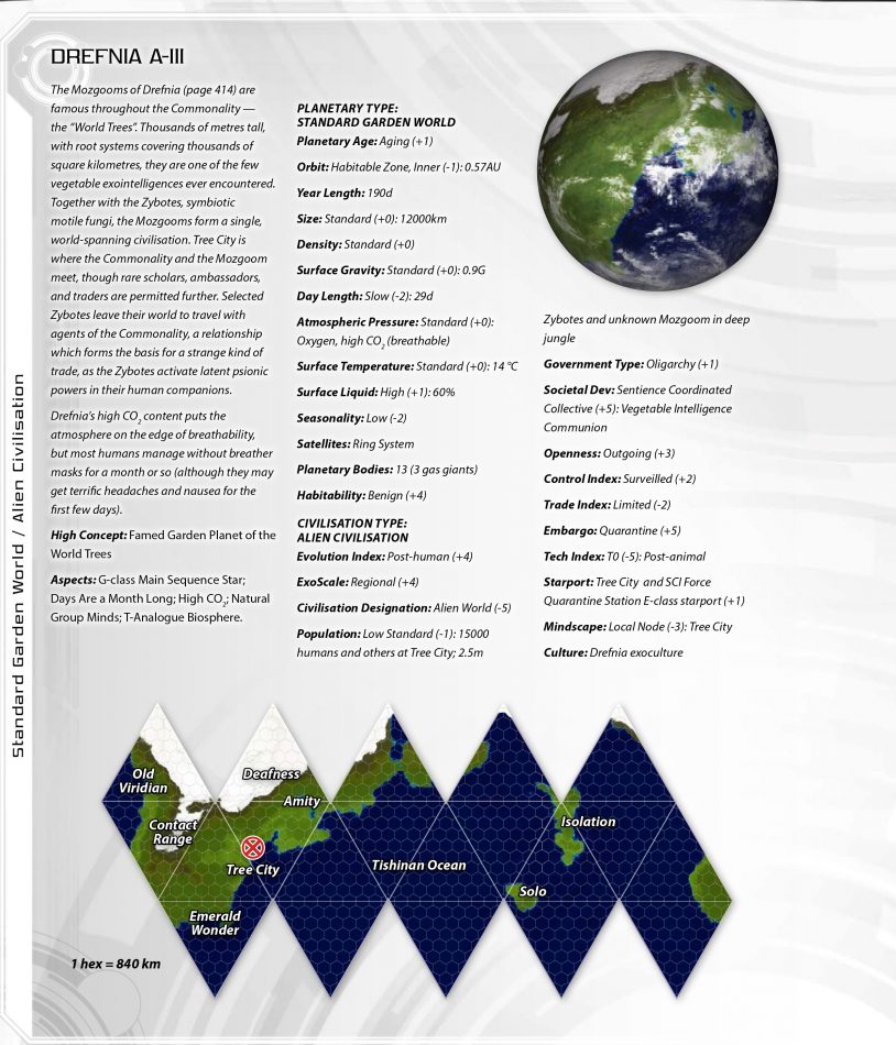 The Darradine Rim schematic shows the 21 star systems which are significant to the Commonality; like all octants, there are many other systems which are either undiscovered or which have only been cursorily surveyed by drone. The octant contains some 4000 stellar bodies of all descriptions, likely including other habitable or semi-habitable worlds awaiting discovery and exploration. The major technological civilizations have probably all been found, but even that isn’t completely certain