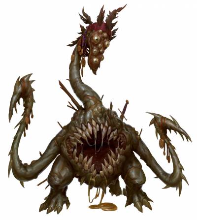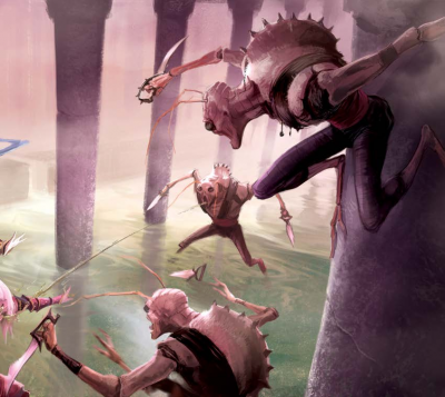 As he speaks, the bodies of the dead and dying writhe toward him, gathering together into a misshapen, serpentine form that merges with Gennaris. Gennaris was famous for killing six Qadiran generals in single combat. He kept each one’s sword as a trophy of his prowess. Those six swords, far larger in the people’s memory than in life, now roam the battlefield on their own.