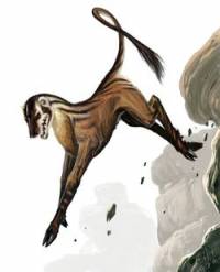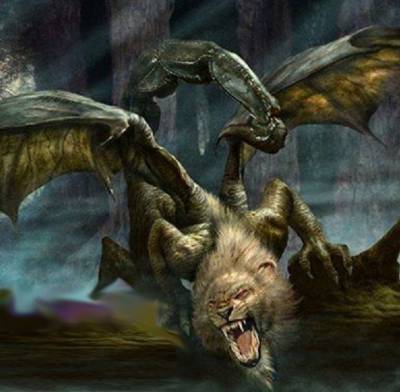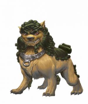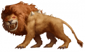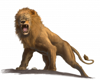 As he finishes speaking, an elephant-sized lion stalks from behind the ruins, its six eyes and golden mane glowing in the sunlight—the legendary Grogrisant/