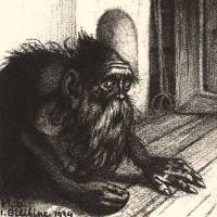 Continuing to search the rooms, the group found a room of old retired banners, again with odd circles drawn. Termerus notes this must be the work of a mathematical, though untrained mined. In another room the party discovers more relics forgotten to time, including a Silver Raven figurine and various Trophies weighing 10 pounds and worth 500 gp Entering a taxidermy room, the group sees great beasts of many types hanging and mounted griffon ferociously in the southeastern corner of this square room. Two wolves stand in similar poses in the northern corners, while an immense coiled serpent poises itself in the southwestern corner, ready to strike. A small elephant stands in the center of the room, its head drooping far too low, and the top of its neck torn open. Thick cords of rope hoist avian creatures of every size along the ceiling, with an impressive eagle taking up the most space.