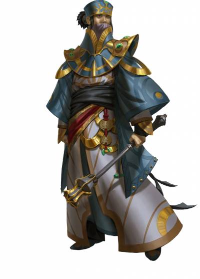 Gennaris’s legend manifests as a spirit of slaughter. His is the unwavering belief that war is necessary to protect a nation’s freedom. The deaths of his enemies weigh heavily on him, but Gennaris is still convinced that military might is the only key to Taldor’s survival as a nation. He sees the group as a threat to Taldor’s security and when he sees the them arrive, he points and declares
