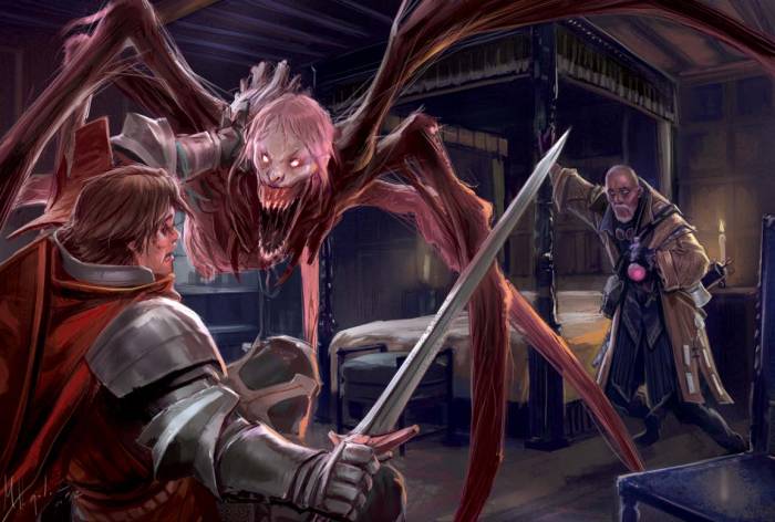 Taking out the big guns, Detash launches a maximized fireball against Gennaris and all but the sword next to Kavian. While none are destroyed, they are hurt. Still, Corwyn tries a sneak attack and is stopped by the swords. With Carrod asking if now is the time for big guns, Mikhael shouts “yes” and she unleashes a chain lightening to strike both their opponent and the swords protecting him, while Lysanthir goes for a sword. Now they are starting to fall, even as he slams Kavian once again. The lycanthrope brawler is gravely injured. Cassia braves an attack, almost buckling to heal Kavian as the cleric stands off and tries the implosion spell. As Cassia heals Kavian, one of the remaining swords absorbs the full might of the powerful spell. The remaining sword defending Gennaris is shoved away by Detahs with a clenched fist leaving room for Corwyn to kill the monster with a well placed attack.