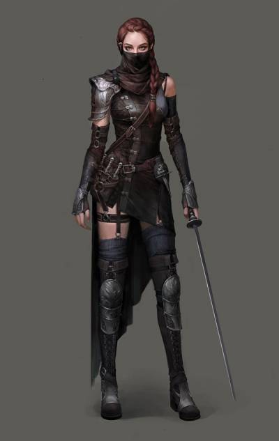 Braided hair and her eyes show over her mask. As Black Pearl, Cassia dresses in a more risque form, distracting others.