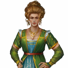 “The Trant family hails from Whitemarch, and its members are quick to use the threat of Qadiran aggression to maintain control of their holdings. While they don’t care one way or the other about women’s rights, much of their influence comes from supporting the staunchly traditional Maxillar Pythareus. While Dame Trant was engaged in this family venture she is now not so sure. Her older brother, Thomas' has taken control of the family with the death of her father. ”