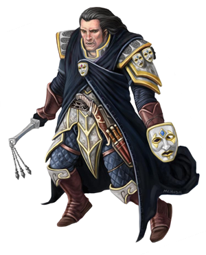Members of the cult leave and enter the temple throughout the day and late into the night, although no set schedule determines their comings and goings. They usually travel in groups numbering around six, with most dressed in white robes, and one or two dressed in gray or black. All wear identical iron masks. The cultists often head out to the poor part of town to distribute bread and vegetables to the poor, all the while teaching them about the power of Razmir. Other groups visit local businesses to gather tithes and investigate problems.