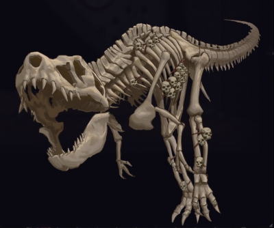 They approach along the Alcazar Terrace. Two reinforced doors set into the walls at the corner afford entrance to the suite on either side of an alcove containing a mummified sentinel. The golden key opens the door. Upon entering, they find a large reception hall with various things within, covered in dust. The largest thing is the bones of a tyrannosaurus. It is, alas, a bone golem, and it attacks the party.