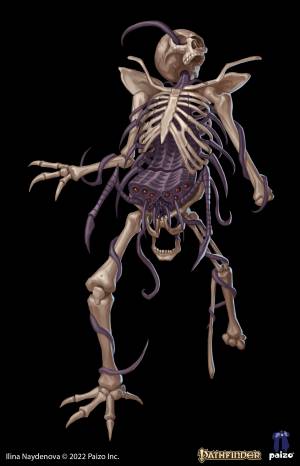 Moving down the steps, they hear the rasps of bones on stone. They are confronted with three ostovites, skeletons being run by things from another plane. Tsekani and Blake quickly kill one that charges them. Another attacks from behind, menacing Zaheri and Sebastian, who retreat and attack it. In a few moments, all of the outer planes monsters are destroyed and Blake as a collection of bones to take.