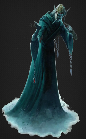 Arriving at the city gates, the three are met by members of the city guard, the Bellator Mortus, a legion of subordinate necromancers, graveknights, skeletons, zombies, ghouls, and ghasts. Zaheri immediately identifies himself and companions as having been summoned to an audience with Geb. The guards seem unimpressed, but tell them to meet with Dizonn Dizuul at the Cinerarium. The group enters the city and Zaheri leads the party to the home of his mother, Sayena Greysong. Sayena greets them with some sense of delight. At least, as much as a lich can have. She has been following Zaheri’s rise, and as a Blood Lord herself, seeks this for her offspring if he can prove himself. She offers the men housing in the quick part of her estate, and gives Blake a decent cell suited for the needs of an undead. She even arranges for a Bonesmith, to come and use his wares to help repair and replace damage to the warrior skeleton.