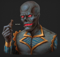 Blake Skelton arrives first. His large frame shows the undead skeleton’s hobgoblin origin. Next up is Zaheri Javed. He is well dressed in fine clothing, walking with his quarterstaff as if it were magic. He briefly talks to Blake as he partakes. Sebastian d'Cross is next, telling the majordomo that he is here on orders from the Cross family. As he and Zaheri size each other up, Tsekani arrives trying to go to a servant’s entrance. Mhyurk redirects him. Zaheri introduces himself and takes it upon himself to introduce the other two. Since everyone has arrived, the ghoul leads them in.