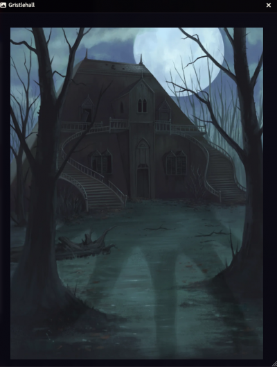 This strange manor stands with twisted trees, perhaps pulled into the formation of the Demiplane. Ahead of the house are Four stone statues that face each other like a cabal of conspirators along the overgrown path to a tall manor with sloping sides and a shallow roof. The main entrance in the center of the north wall is flanked by two wrought-iron staircases that lead to balconies and other doors on the second story. Shadow clings to the building like a stain, forming strange patterns in the ivy snaking up the manor’s crumbling exterior. Dark windows stare out like baleful eyes, soulless and unfeeling. It is clear to both Zaheri’s and Dregdat’s mystical senses that shadow magic permeates the region and the home. The statues themselves appear to Dregdat to be some sort of animated things. Everyone agrees that no doubt they will come off their plinth’s. Each one has an inscription they can see: