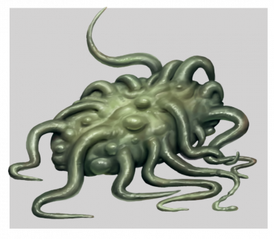 The Mess of Tissue: One of the experimentation areas contains an amorphous mass of tissue. It has no discernible limbs but there are vestigial organs within. These are not enough to keep it alive; the machinery in the installation has been doing so ever since the facility was abandoned. Tissue regeneration and advanced machinery have resulted in a near-immortal mass of flesh with no purpose. Like the poor things outside, it too has Droyne DNA.