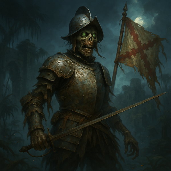 There is a shout in Spanish, and another corpse comes bursting into the room. It is the body of a conquistador. Jessie reaches out with his Mind. The Spanish suddenly resolves for Jessie: