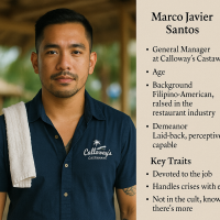Marco speaks with the easy cadence of someone who’s lived on both coasts. He's fluent in restaurant slang, Taglish, and resort diplomacy. When needed, he can snap to military-style command. Usually, though, he operates with chill authority.
