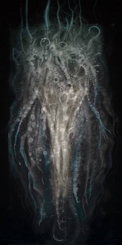 The strange growths on the foreman’s hands stir and eyes open up. They clench in anger. Cries go up around the caldera the puppet worker’s heads are crushed by the creatures upon them. The black pool stirs and rises up, eyes opening along its body, black whip like tentacles emerging. It immediately absorbs all the people around it. Yet another monster to face. Jack’s men start firing upon it, showing remarkable poise in the face of this thing, or maybe just insane fear. Lee, however, hears his friend laughing and celebrating.