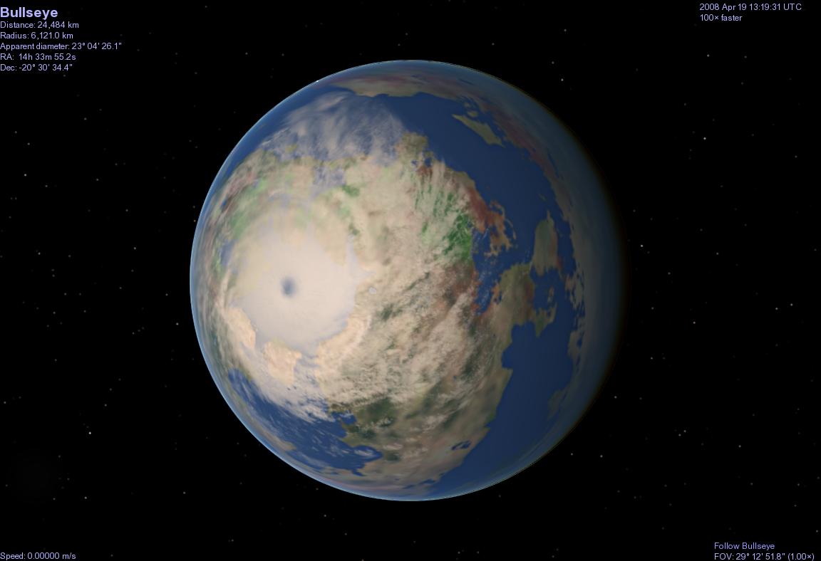 The settlement Talikia sits at the north pole. It is arid, (like western US) but the climate is steady and weather regular. The area of this zone is about the size and shape of California, oriented horizontally. Areas with shade by terrain are always in shade, areas in light are always in light unless there are clouds. It takes some getting used too.