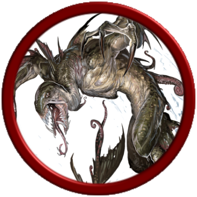 A wrought iron framework supporting thick glass panels creates an imposing dome, though sediment from the dirty harbor above blocks most of the light that might otherwise stream into this underwater chamber. From the apex of the dome hangs a gigantic fossilized spider, which swings from a thick rope of roughly woven, silver silk. The cult’s main temple is this underwater chamber, built decades ago at great expense by a Gozreh-worshiping member of the Caligaro family. The presbytery shows signs of age: puddles of leaking seawater form on its tessellated floor, and its glass panels are clouded between webs of rusted framework. The chamber looks like a refugee camp for cultists as much as a place of worship. The petrified idol itself dominates the chamber, hanging suspended and upside down above the water-damaged pews and makeshift cots of the assembled cultists. Similarly suspended are three sacrifices: webbed cocoons of drugged and paralyzed victims prepared in area and moved here, where the idol/would be god, Mog-Lathar consumes their dreaming minds.