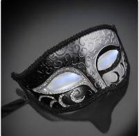 This is an ornate black masquerade mask, is fashioned to surround the wearer’s eyes and cover the forehead and cheekbones. It is mask is made of porcelain decorated with silver filigree, with moonstone lenses over the eyes. Through translucent, wearer can see normally through them. This elegant mask can disappear completely into the skin of the user, leaving only the faint signature of transmutation magic. The mask offers visual benefits to the user in this hidden state.