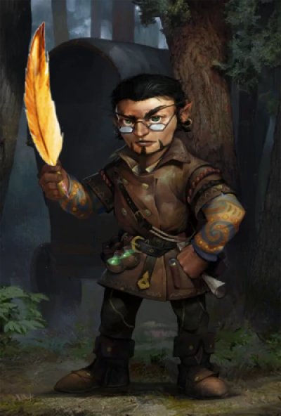 Gnome who was passing through and decided to settle when he say Kalbio in action. Old home caught up in fighting. Now he is the Baron's Accountant.
