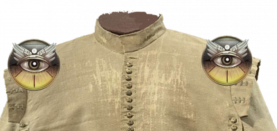 This tattered Mantel was once white but is now a dusty brown. It was worn by High Priest Bellathos during the Third Expansion. He served as a warrior-priest brining the truth and light of The First Man to the barbarians of the hinterlands.