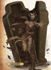 ”Or, maybe not” Kepher mutters as he charges back into the building. Inside, the haggard staff and auction participants cower in fear at the mummy, Amadjawet. minor noble whose family crypt and its contents were cloaked in illusions to protect them from grave robbers. When the Four Lanterns discovered an apparently empty sarcophagus in the tomb, they opted to retrieve and sell it rather than leave empty-handed, never realizing that the sarcophagus held the permanently invisible mummy of Amadjawet. The ka pulse awakened Amadjawet into an undead mummy, and she has spent the past several minutes clawing at her prison.