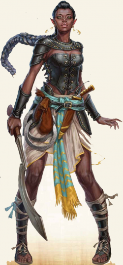 Baketra (female human): One ofWati's richest and most notorious gourmands, she's keen to sample forgotten treats or liquors, or purchase ancient artwork to decorate her large dining room.