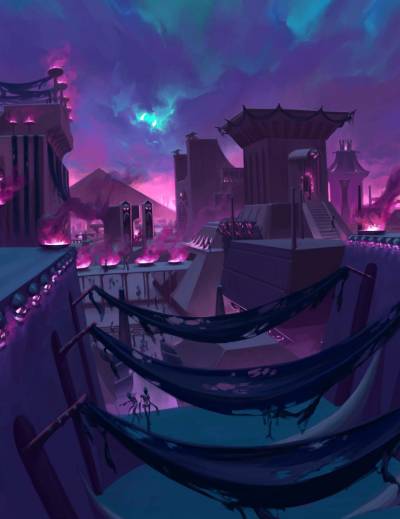 As the capital of Geb and the nation’s second-largest city, Mechitar serves as the backdrop for many of the most significant and history-changing decisions affecting the nation. Though Geb himself holds court within the massive citadel known as the Cinerarium, he has a general disinterest for details he considers beneath him and is more obsessed with Nex’s possible return. Thus, he leaves the daily oversight and operations of his nation to his conclave of approximately sixty powerful necromancers and personal apprentices known as the Blood Lords. Led by Chancellor Kemnebi (the very person the group now suspects of treason), the Blood Lords govern interactions between the quick and the dead. This includes adjudicating disputes, passing laws, protecting the nation’s citizens from harm, warding against supernatural threats, and furthering the nation’s interests both domestically and abroad.
