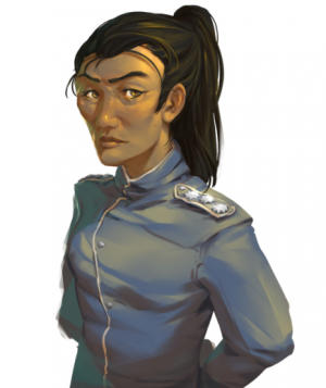 Maria flies up to the ship seeing Aurther standing outside arguing with a Omicron shocktroop. She floats up behind him, her sword drawn. She orders him to disarm and wait outside while the get the refugees inside. She then heads into help with that, afraid of what she might do if she is left to guard him.