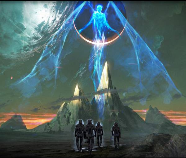 Even though they are linked telepathically, the four still glance at each other. Their weapons are still drawn. They follow the attendant through the grand ritual chamber and reception area, past two other warriors, to the command center. The real command center for the complex. The command chamber for the installation is grander than the others, as might be expected. It has a wide dais, upon which stands an imperious looking man, in black and gold robes.