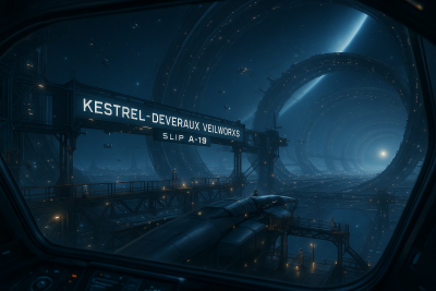 ”Starlight Drifter, this is Kestrel–Deveraux Veilworks. Welcome Home.”